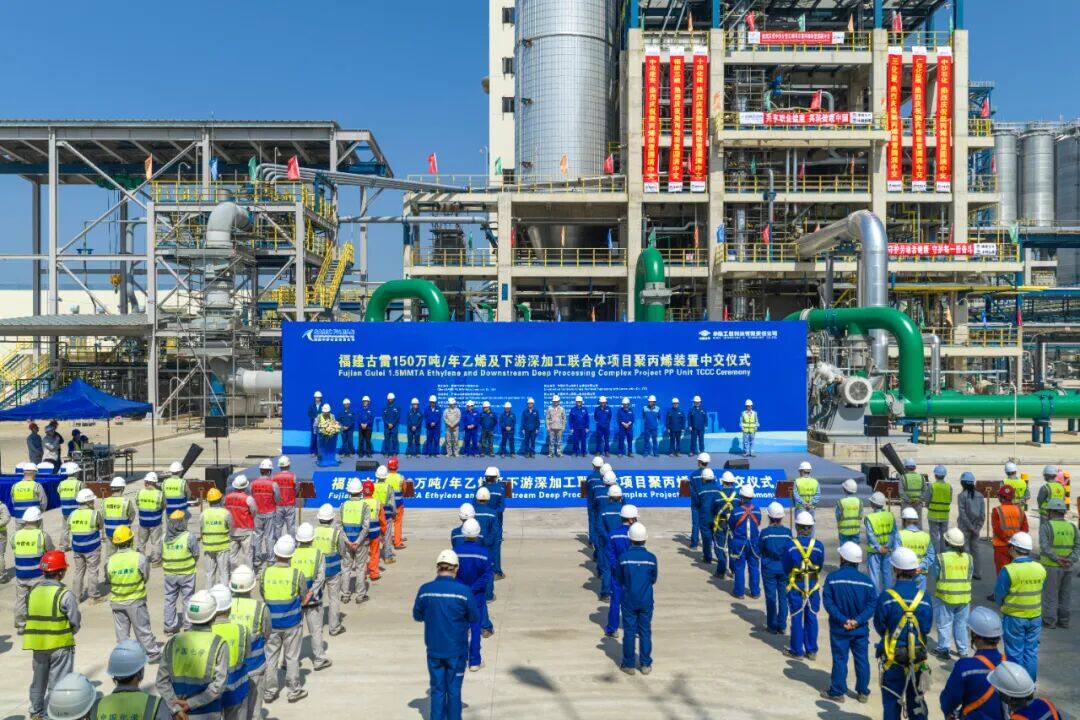 Recently, the intermediate handover of the 600000 ton/year metallocene linear low-density/high-density polyethylene unit in the 1.5 million ton/year ethylene and downstream deep processing consortium project of Sinopec Fujian Gulei has been successfully completed, making it the largest single series unit of its kind in the world; On April 22-24, 2026, the project organized an expert review meeting for the "Trial Production Plan", which was successfully approved; On April 26, 2026, the 550000 ton/year polypropylene plant of the project was successfully completed and handed over.