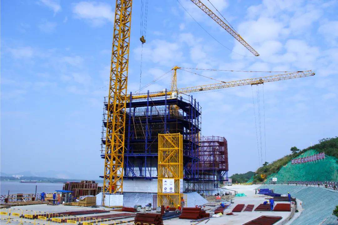 The north main tower of the bridge has a total height of 159 meters. It is constructed with an ACS100 integral hydraulic self-climbing form system. The system is driven by 10 heavy-duty oil cylinders. Compared with the conventional separate climbing formwork system, the integral hydraulic self-climbing form system is fully enclosed. There is no need to unlock, and the overall climbing at the same time during jacking is high in safety and work efficiency.