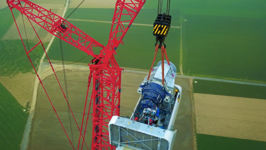 In the process of hoisting the fan, the distance between the nacelle and the boom continues to decrease due to the longer cabin. In order to ensure the safety of hoisting, this time SCC8000A adopts the method of side hoisting to raise the cabin to the installation height before turning. Fortunately, the wind power for hoisting is very ideal. It takes less than 30 minutes from the ground to the completion of the counterpart.