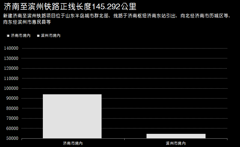 The newly-built Jinan-Binzhou Railway Project is located in the northern part of the Shandong Peninsula urban agglomeration, and the line is led from the Jinan East Station of Jinan Hub (in parallel with the Jiqing High-speed Railway) to the north of Licheng District, Zhangqiu District, Jiyang District, and Shanghe County in the economic south of the city. Go east through Huimin County and Bincheng District of Binzhou City, and connect to Binzhou Station (Jibin, Binzi, Jinwei and Weichang). The length of the main line is 145.292 kilometers, including 90.516 kilometers in Jinan City and 54.776 kilometers in Binzhou City. There are 131.658 km/4 bridges on the main line, 7.458 km/2 bridges on the main line, 0.452 km/1 bridge on the underground station of Yaoqiang Airport, and the total length of the bridge and tunnel is 139.568 km, accounting for 96.06% of the total length of the line (including the underground station of Yaoqiang Airport). There are 6 stations in Jinan East, Yaoqiang Airport, Jiyang, Shanghe, Huimin, and Binzhou on the whole line, including 4 newly built stations, introducing 2 existing stations (Jinan East, Binzhou), and Yaoqiang Airport Station as an underground station. The design speed target value is 350 km/h (200 km/h from the east of Jinan to Jiyang), the estimated total investment of the project is about 320.063 million yuan, and the total planned construction period of the project is 4 years.