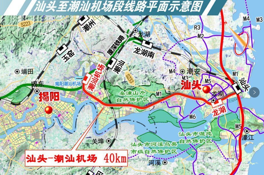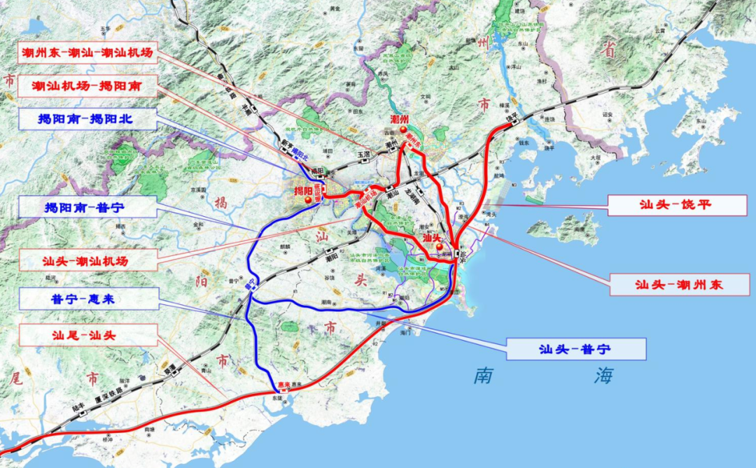 From August 27 to 28, the pre-feasibility study review meeting for the Shantou-Chaoshan Airport section of the East Guangdong Intercity Railway, the Chaozhou East-Chaoshan Airport section, and the Chaoshan Airport-Jieyang South section was held in Beijing. It is reported that the Shantou to Chaoshan Airport section, the Chaozhou East to Chaoshan Airport section, and the Chaoshan Airport to Jieyang South section under this review are part of the Guangdong East Intercity Railway Network.