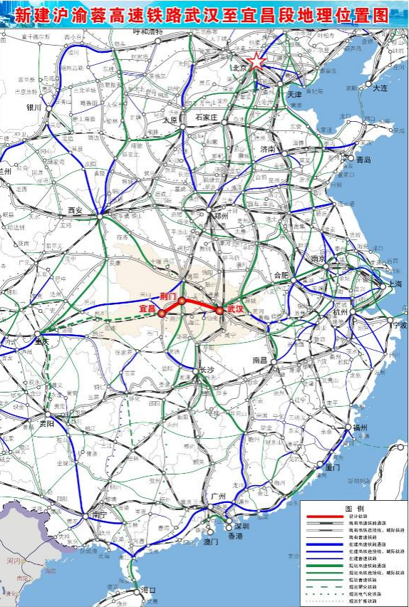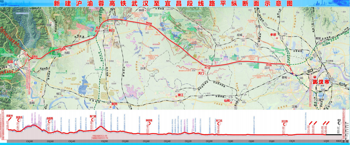 The Wuhan-Yichang section of the Shanghai-Chongqing-Ronghua high-speed railway is located in Hubei Province. Ling) to Yichang (Yiling District, Dangyang City). The east end of the project is connected with Hewu High-speed Railway, Beijing-Guangzhou High-speed Railway, Wujiu High-speed Railway, Wuhan-Huanggang-Huangmei Railway through Wuhan Hub, and the west end is connected with the proposed Yichang-Zhengzhou Railway. The connection line of Wan Gao Railway and Yuyi High Speed Railway are connected.