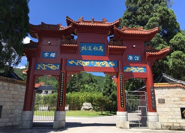 The overall architectural pattern of the temple is strictly in accordance with the style of Buddhist temples. The gate of the temple faces south and there is an antique archway with a height of 13 meters. In the middle of the Efang, there are four big characters in the Mazu Daochang written by Zhao Puchu, and Jiangyou Zen is engraved next to it. On the column is a couplet written by the honorary president of the Chinese Buddhist Association and the former abbot of Baofeng Temple Yicheng Elder: "Baofeng Jing The domain, the source of the rain, and the jungles of the world began; the Mazu Taoist Temple has a wide range of wind and quilts, and the west is looking for it." There is a half-moon-shaped release pool in front of the memorial arch. Complete, simple in shape.