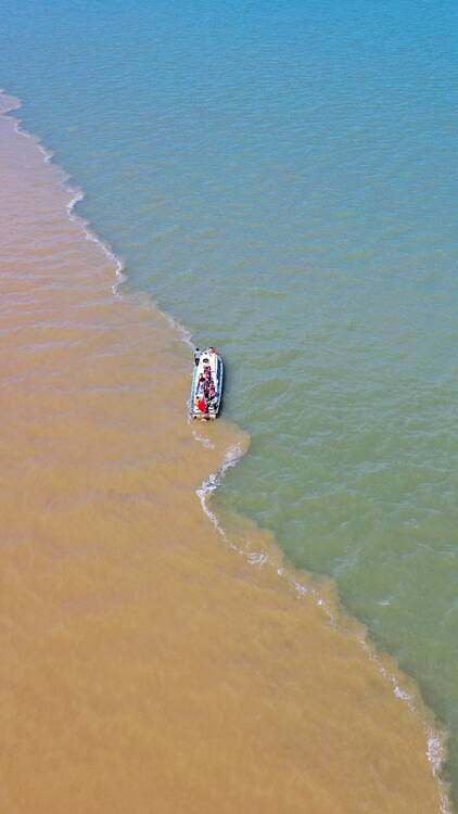 The rushing Yellow River finally relieved its fatigue and slowly poured into the azure Bohai Sea. The yellow water of the Yellow River merged with the azure sea. The spectacular scene of the convergence of yellow and blue is shocking and sighing. The beauty of the Yellow River Estuary is beautiful, peaceful, colorful and charming. Editor/He Yuting