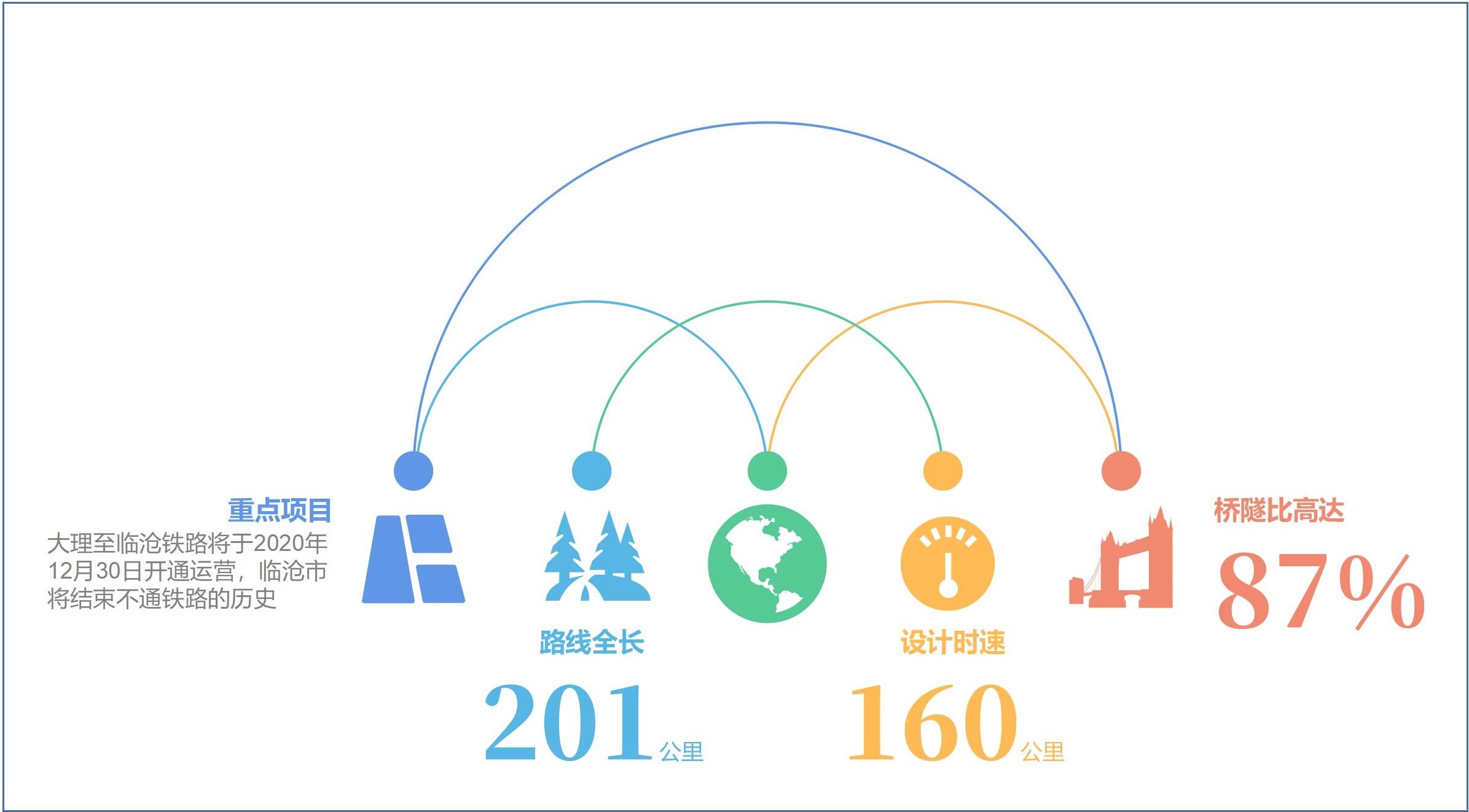 The Dali-Linzhou Railway runs all the way south from Dali City, crosses the Lancang River through Weishan County and Nanjian County in Dali Prefecture, and enters Lincang City via Yun County. It is a national railway class I single-track electrified railway with a total length of 201 kilometers and a designed speed of traffic 160 kilometers, newly built passenger transport stations such as Weishan, Yunxian and Lincang. 69 new bridges and 35 tunnels were built across the line, with a bridge-to-tunnel ratio as high as 87%.