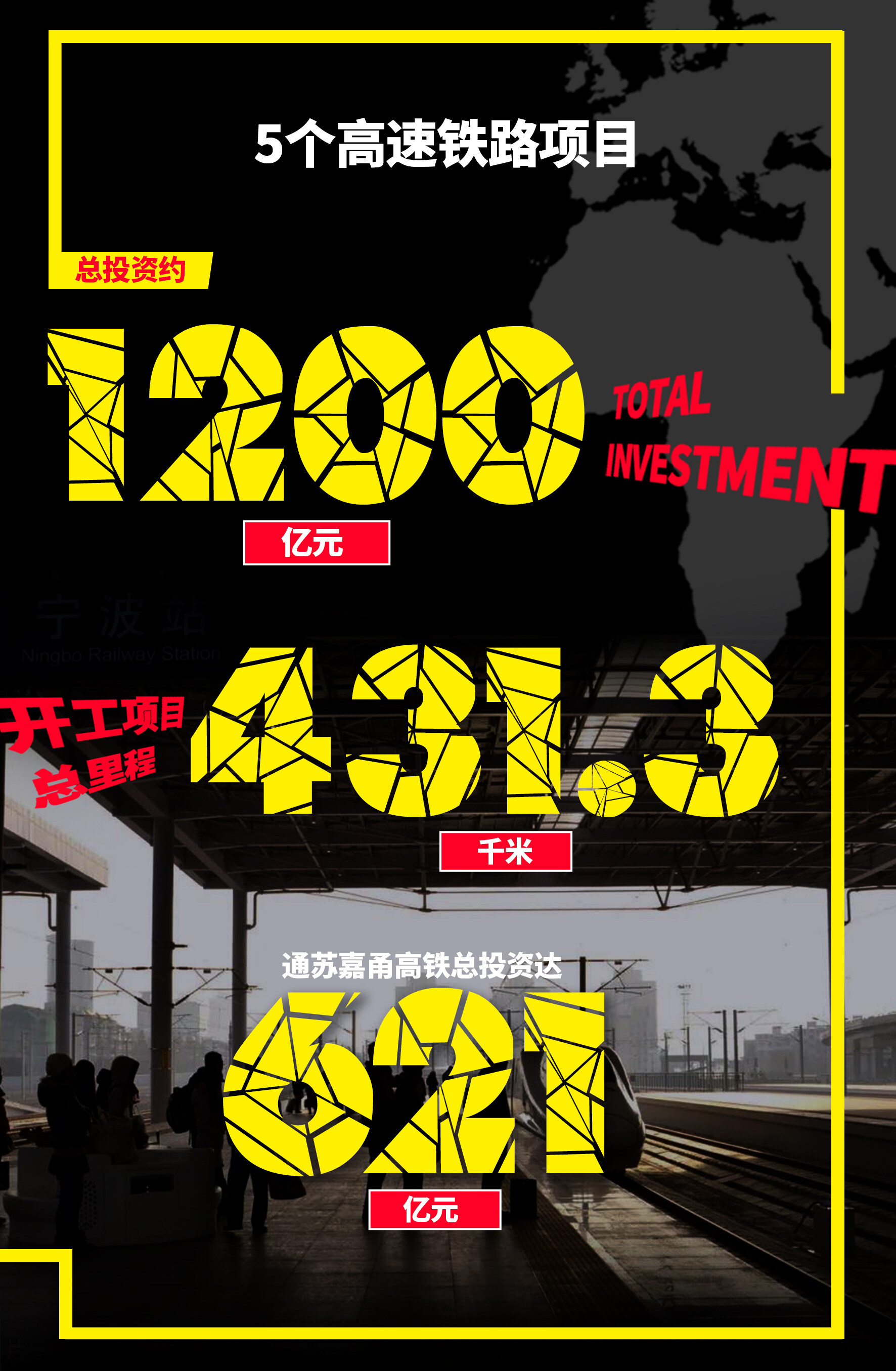 Among them, the high-speed railway projects include 5 railway projects including Tongsu-Jiaong-Ningbo High-speed Railway, Yongzhou Railway, Quli Railway Phase I, Hangzhou-Wenzhou High-speed Railway Phase II, and Jinjian High-speed Railway, with a total mileage of 431.3 kilometers and a total investment of more than 100 billion yuan, reaching 1195.8 100 million yuan, of which the Tongsu-Jiaong-Ningbo high-speed rail, with a total investment of 62.1 billion yuan, is the project with the largest investment amount and the longest mileage.