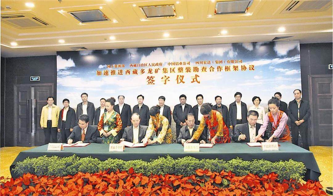 On August 26, 2012, the Ministry of Land and Resources, the Tibet Autonomous Region, Chinalco, and Sichuan Hongda signed the "Cooperation Framework Agreement on Accelerating the Promotion of the Integrated Exploration of the Duolong Mine Concentration Area in Tibet" in Lhasa, Tibet, forming a breakthrough strategy for prospecting The new model of cooperation in commercial prospecting by the previous ministries, provinces (regions), and enterprises in action.