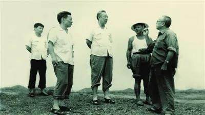 Xi Zhongxun (third from left) conducts research in the countryside of Huiyang, Guangdong Province, August 1978. Xi Jinping (first from left), a student at Tsinghua University, spent his summer vacation taking part in social practice and traveling to the countryside with his father