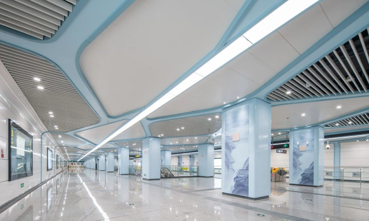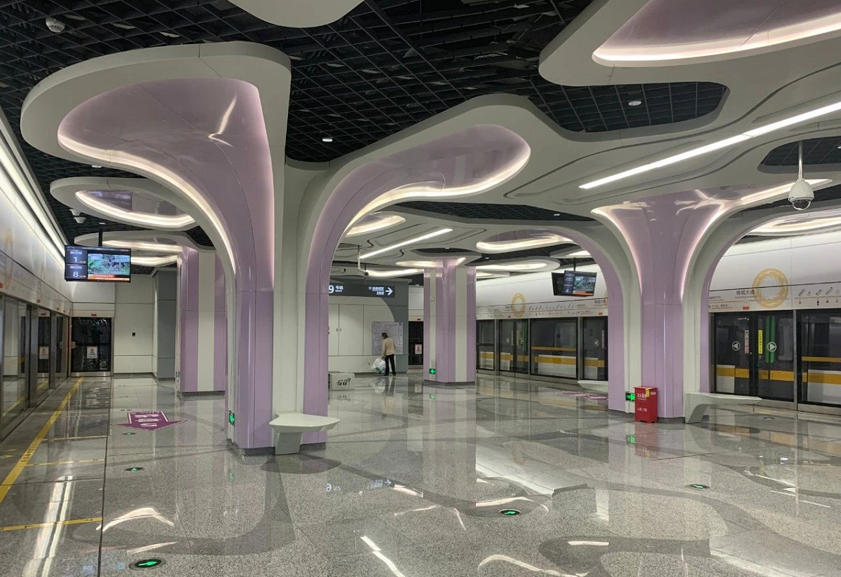 Jincheng Avenue station takes "Jinxiu Chengdu" as the design theme, integrating the city flower "Lotus" into the site design