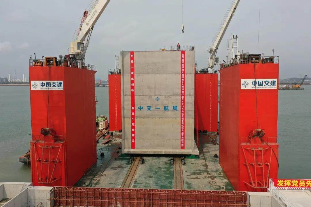 Recently, the 4,000-ton semi-submersible barge slowly left the wharf and sailed to the Dalanping operation area of Qinzhou Port on the opposite bank. It is carrying the first caisson of the 200,000-ton-class automated container terminal at Qinzhou Port. It will be consigned to the site of Berths 9 and 10 in Dalanpingnan Operation Area of Qinzhou Port, 6.5 kilometers away, and the installation will be completed within 24 hours.