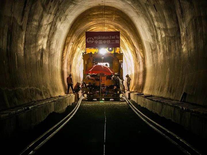 In May 2020, workers from China and Laos worked together to lay the tracks at the construction site of the China-Laos railway in the Gengkai Village Tunnel in Vientiane Province, Laos.