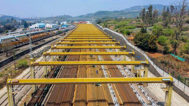 The Yuxi to Mohan section of the China-Laos Railway is 508 kilometers long and requires 500 meters of long steel rails totaling 1,780 kilometers. All of them are welded at the Huanglongshan Rail Welding Base of the China Railway Kunming Bureau Group in the eastern suburbs of Kunming. Transported to the site one after another to ensure the smooth progress of the track laying construction.