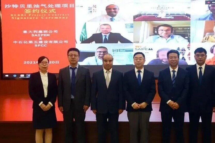 On May 20, 2021, Sinopec Fifth Construction Co., Ltd. and SAIPEM of Italy held an online signing ceremony for the Saudi Berry oil and gas processing project.