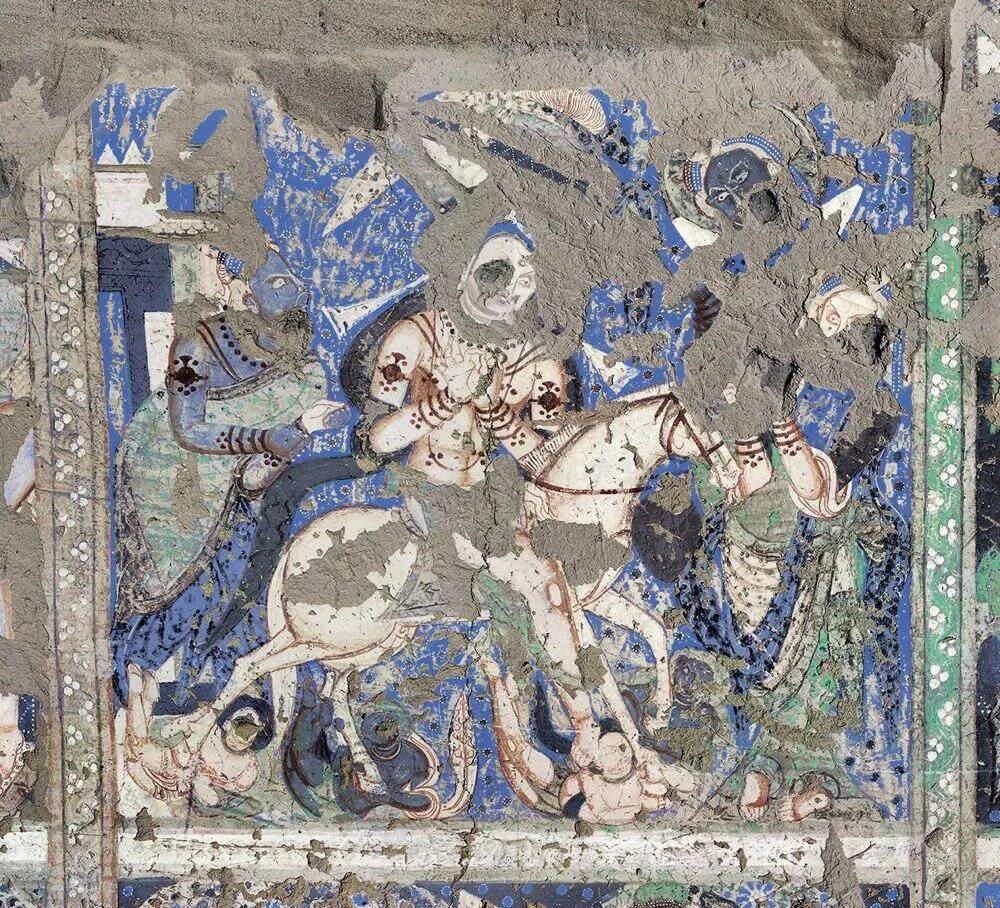 The story of Buddhism "Overpassing the city at midnight" The right side wall of the main room of Kizil Cave 110