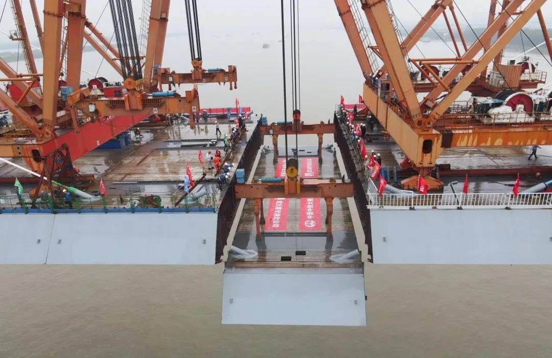There are 63 sections of steel box girder for the main channel of the South Branch, with a total weight of about 33,000 tons. The standard section is 18 meters long and weighs 540 tons. It uses a 650-ton girder crane cantilever. Affected by the 2020 new crown pneumonia epidemic and floods, the construction period is extremely tight. To this end, the China Railway Bridge Bureau adopted measures such as "tower column-steel beam synchronization", "steel beam-deck auxiliary synchronization" and other measures during the construction process to realize the safe cross construction of multiple work surfaces and save nearly 6 months of key lines. The construction period ensures that the bridge closes on time.