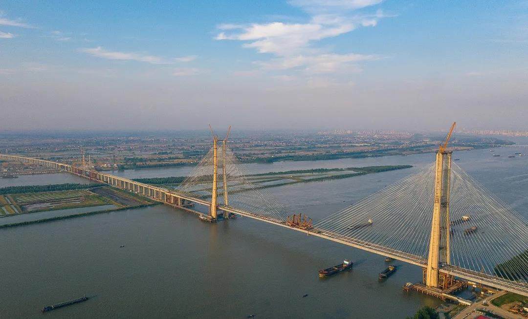 The Bream Island Yangtze River Bridge has a main span of 672 meters and is designed as a double-tower double-cable-plane cross-stayed cable-stayed bridge. It is a four-lane railway bridge, two of which are high-speed rail lines with a design speed of 350 kilometers per hour; two lines are reserved for passenger and freight lines , The design speed is 200 kilometers per hour.