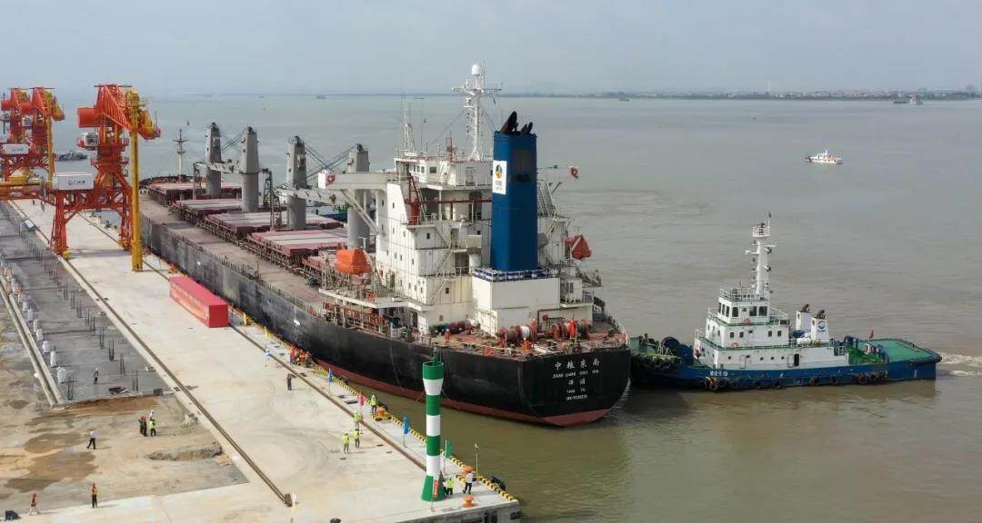 On June 20, with the loud whistle, the grain bulk carrier "COFCO Southeast" loaded with 50,000 tons of wheat smoothly berthed at berth No. 11 of Xinsha Wharf, marking Guangzhou Port Xinsha Port Area No. 11 and No. 12 General The berth and barge berth project (hereinafter referred to as the second phase of the Xinsha Project) has officially berthing capacity.