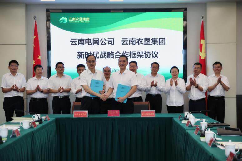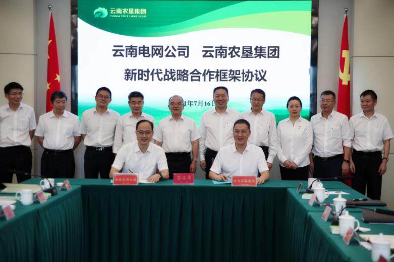 On July 16, 2021, Yunnan Agricultural Reclamation Group and Yunnan Power Grid Corporation signed a new era strategic cooperation framework agreement to further promote the reform of the power system and deepen the coordinated development of "green energy brands and green food brands".