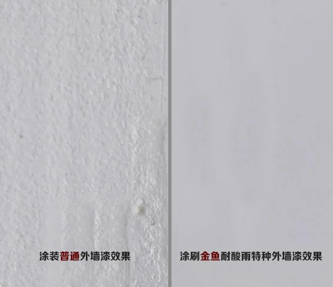 Goldfish·Acid rain-resistant special exterior wall paint. Acid rain refers to rain, snow or other forms of precipitation with pH <5.6, which is mainly caused by man-made emissions of large amounts of acidic substances into the atmosphere. With the process of industrialization, some areas of our country have become acid rain prone areas. Acid rain can damage the surface of non-metallic building materials (concrete, mortar and sand-lime bricks), and can also make building surfaces dirty and black, affecting the quality and quality of the city’s appearance. The urban landscape is called the "black shell" effect.